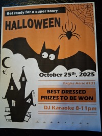 Ages: 21+ Attention all ghosts and goblins, ghouls and witches, the Muncie Eagles 231 is having a Halloween party that's sure to be more fun than any spell you could conjure up in your cauldron. Costumes optional, but there's a best dressed contest. Karaoke and ice cold beverages will also be available. Open to the public, so bring your friends and come join us.